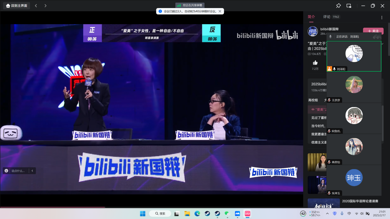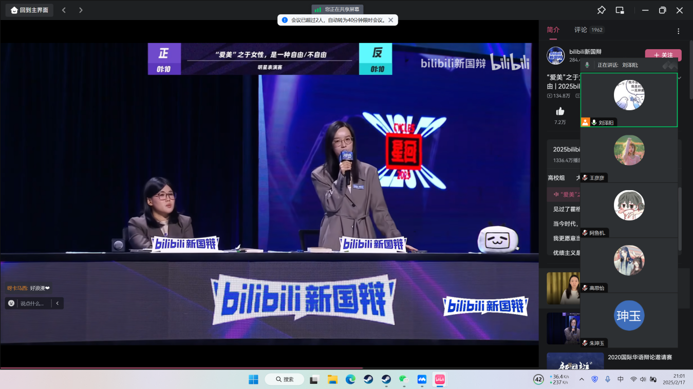 2025年2月21日,吉林动画学院肆言堂辩论社在寒假期间开展了线上《新国辩》观赛活动,组织社团成员观看《新国辩》——《爱美之于女性/是一种自由/不自由》邀请赛。