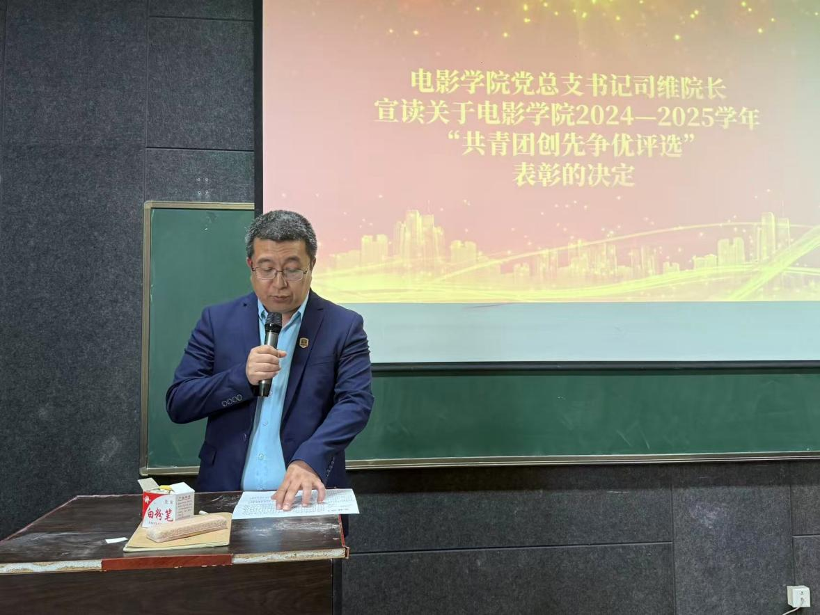 2025年6月10日,吉林动画学院电影学院2024-2025学年“共青团创先争优”表彰大会在F106隆重举行。电影学院副院长温丽君、李佳,电影学院党总支书记司维,电影学院院长助理姜文玉,电影学院学工办主任盛玉,电影学院基层团委书记刘倩及师生代表参会。大会在国歌声中拉开帷幕。