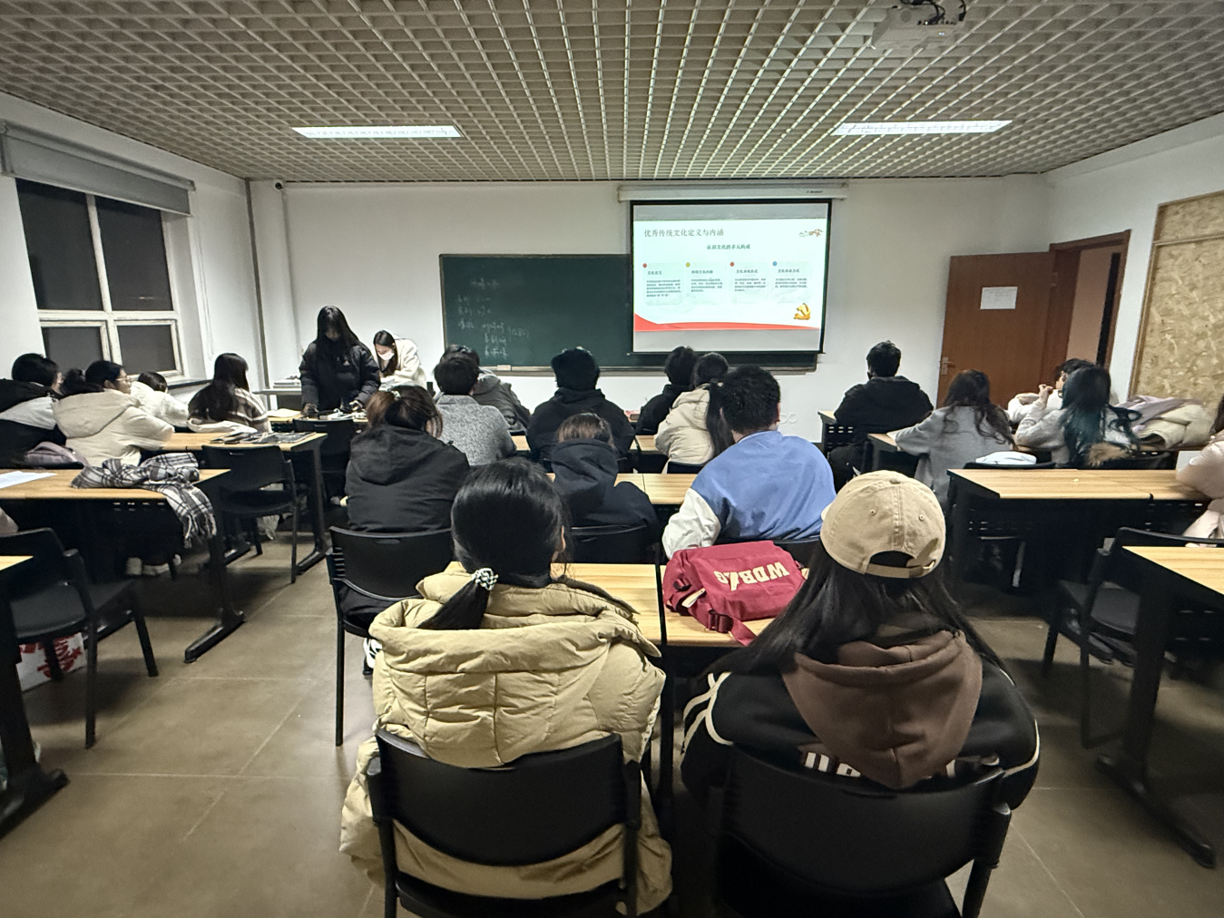 为引导青年学生深化对中华优秀传统文化的认知,厚植文化自信。2025年11月17日,电影学院团委组织部组织开展第三次主题团课。本次团课以 “弘扬中华优秀传统文化,增强文化自信”为主题,通过系统讲解、案例分析等形式,让同学们沉浸式感受传统文化魅力,汲取精神养分。