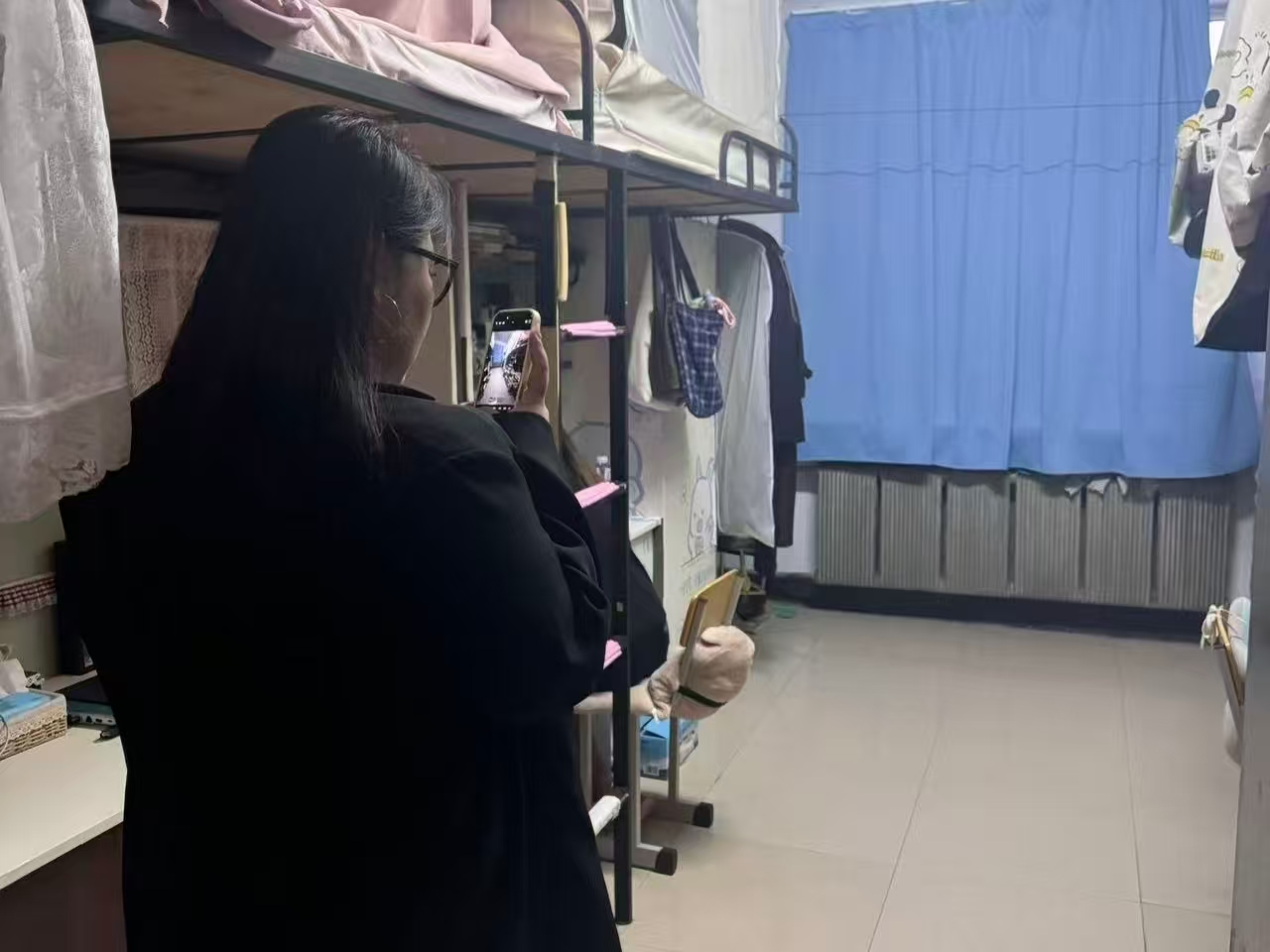 活动当天,工作人员按时集合分组后,有序开展入户检查。检查过程中,大家严格遵循“礼貌敲门、亮明身份”原则,在征得寝室成员同意后,对照卫生状况、物品摆放、安全隐患等核心指标逐项评分并拍照记录。重点排查了热得快、电饭锅等违规电器及私拉乱接电线等问题,同时核查插排是否按要求挂起,确保住宿安全。