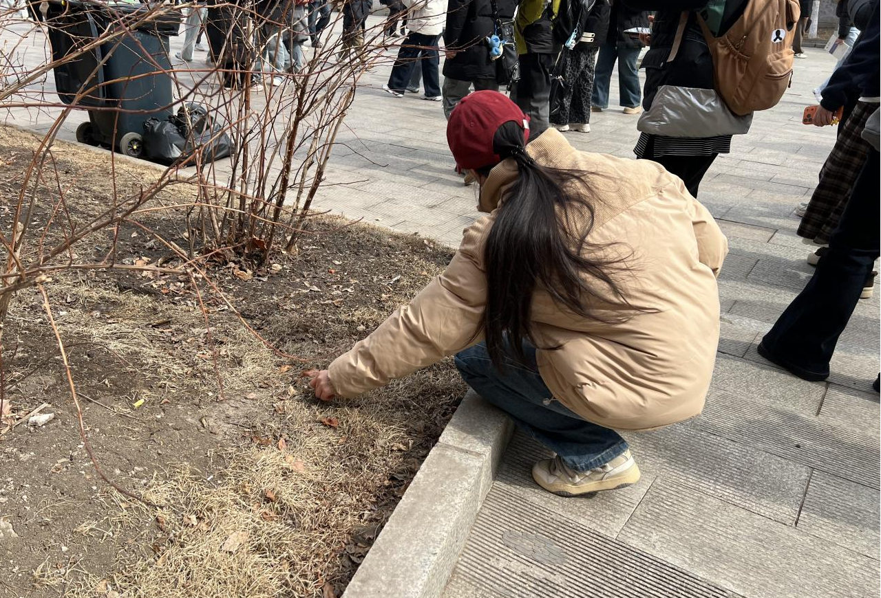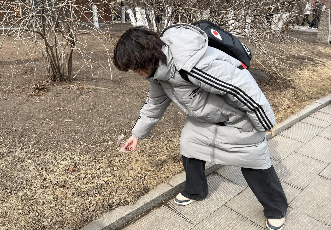 学生捡拾地面垃圾