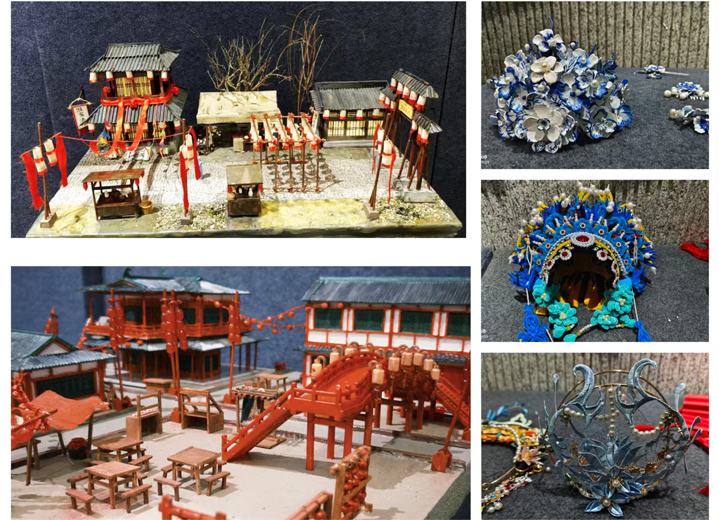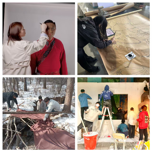 在创作实践中,学生们采用 “项目制” 模式深度参与全流程,涵盖前期调研、方案设计及模型制作等环节。部分优秀作品被纳入吉林省文化产业发展重点项目孵化体系,实现创作成果与产业孵化的有机衔接。通过《光东村》、《大圣》、《寸土丹心》、《少年艾的奇幻历险》等微电影、微短剧的场景置景、舞台剧《火柴的秘密》的舞美设计等校企真实项目,实现了作品到产品的创造性转化。学生在创作中巧妙融入传统文化元素,将创意转化为一件件可触摸、可传播的艺术产品。这种深度产教融合模式,既提升了学生的专业实践能力,也推动了传统文化的创造性转化与创新性发展,实现文化传承与产业发展的同频共振。