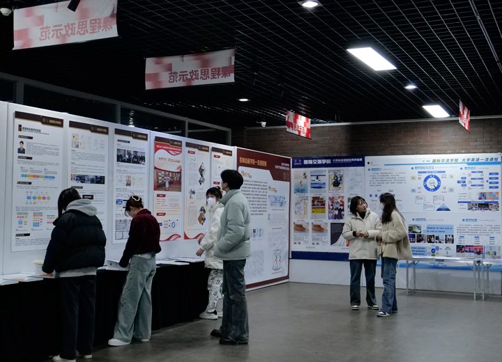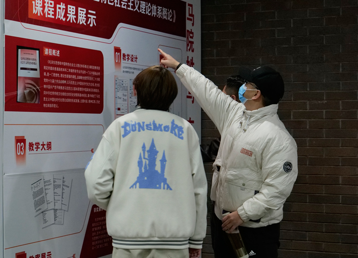 在展览现场,从基础课程到专业课程,从理论教学到实践教学,精美的展板呈现出学校各学院、各专业在课程建设上的改革成效与探索路径。成果展还展示了学校在信息化教学方面的新成果,教师在看展过程中积极进行研讨与交流。