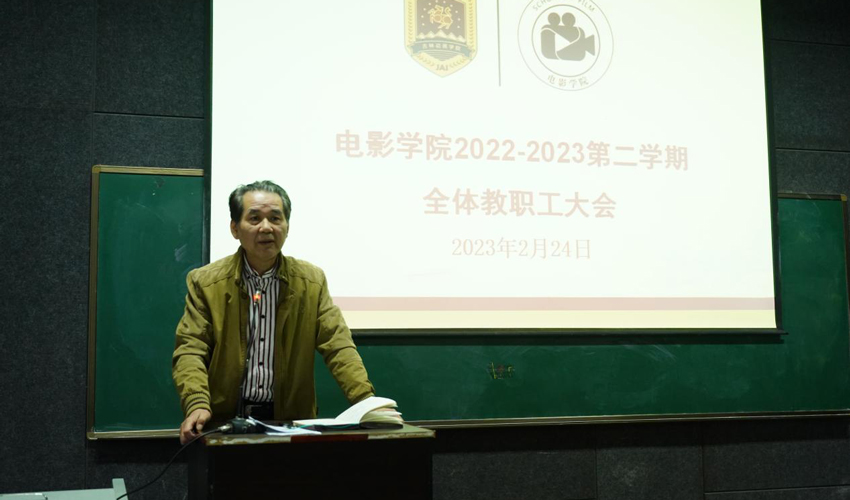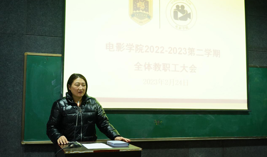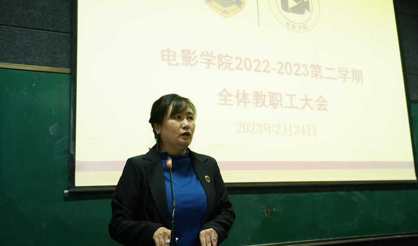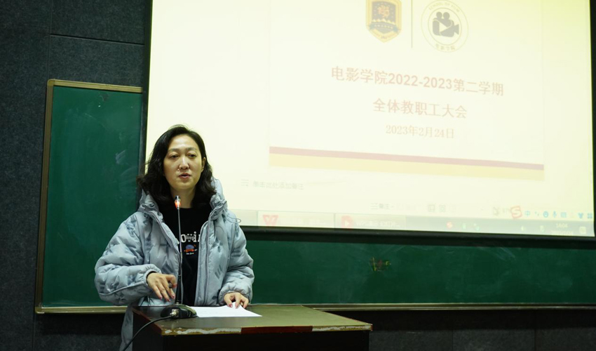 2月24日13:30,电影学院在F楼106举行2022-2023学年第二学期第一次全体教职工大会。电影学院院长刘军谊主持会议,副院长谭皓月、太清华、郑军、赵凌云、院长助理温丽君及全体教职工参加会议。