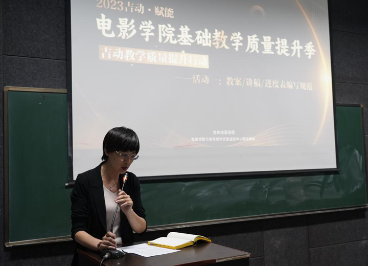 电影学院坚持评建结合、重在建设的指导思想,助力各专业建设与课程规范性建设,对标本科教学审核评估标准,找准差距,补足短板,不断提升服务本科教学的质量和水平。2023年9月15日,电影学院特邀吉林动画学院王红梅教授作题为教案、讲稿、进度表编写规范的讲座;讲座由电影学院副院长温丽君主持,电影学院全体教师参加培训。