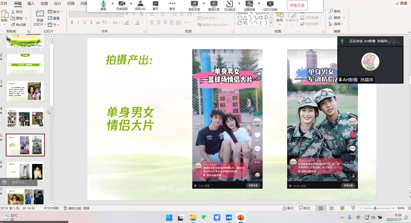 2022年5月27日(星期五)中午11:00,电影学院在腾讯会议开展电影学院2021年大学生创新创业项目结项答辩。电影学院李佳骏主持本次答辩,学院平台负责人、综合办潘雪樱、孙颖及所有项目负责人参加本次答辩。