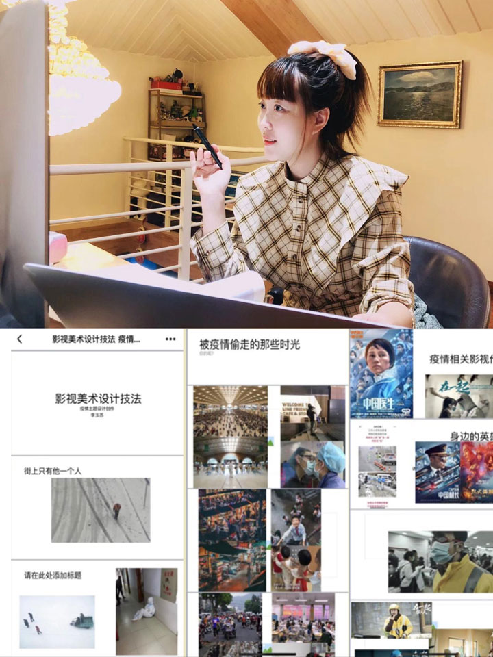 戏剧影视美术设计专业《影视美术设计技法》课程,任课教师李玉苏总结以往线上教学的优秀经验,为实现与课堂讲授比肩的教学效果,运用新方法、新手段,结合专业特征,灵活设置课程安排。在实际授课过程中,侧重从多角度协调课程知识推进,兼顾思政教育与就业引导,专业教育与育人结合,努力实现学生专业知识与人格情操的双修双优、身心健全成长。线上授课教学中以学生为主体,树立以人为本基本理念,调动学生自身的学习主动性,提高学习兴趣,激发学生创作潜能。通过在课程内容融入疫情精神,对学生进行正面的引导与鼓励。引导学生树立社会责任意识,明确自身专业在未来就业方向以及社会媒介传播中产生的重要作用,鼓励学生利用自己的专业创作出能够影响更多人的优秀作品,为社会安定团结做出更大贡献。