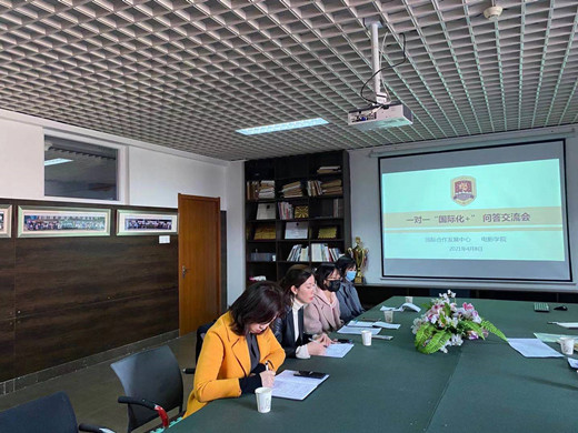 4月8日下午13:30,在F楼414室国际合作发展中心与电影学院召开一对一“国际化+”问题交流会。出席会议的有国际合作发展中心常务副主任鲍怡萍、国际合作发展中心各项目负责人佟舒、宋珊珊、王涵菲,电影学院常务副院长李伟华、副院长娄东义、副院长太清华、各系负责人等。参加会议的领导及老师根据学院各专业自身情况,就学院课程引进、师资建设、品牌活动、国际赛事及学生交流等工作积极发言,共同探讨学院国际化建设情况。
