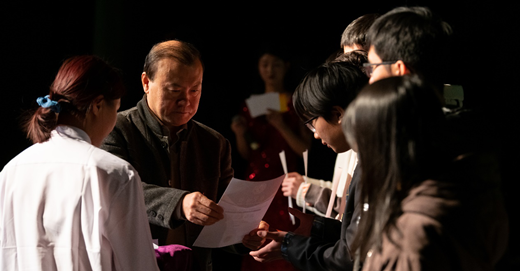 颁奖典礼最后,大家共同喊出电影学院的口号“电影学院,勇往直前”,影视摄影与制作系的口号“立竿见影,荣辱与共”。