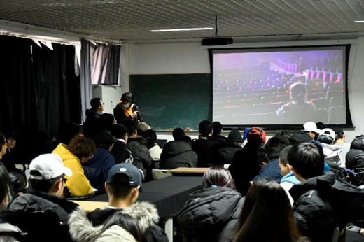 卓曜科技总经理代鑫先生、青年摄影师万博成先生带来短片摄影作品与同学们交流讨论。以同学提出问题作为切入点,万博成先生和大家一起讨论了“电影中的符号设计”、“电影镜头内外反拍带来的主观感受”、“汽车戏玻璃的处理”、“画面调子和摄影用光”等问题,和同学们探讨自己对电影视听语言的理解和电影摄影的用光理念等。