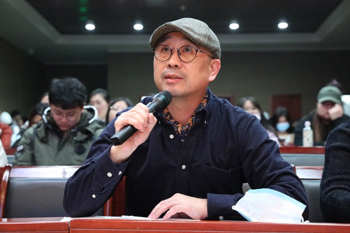 首先,电视与新媒体学院副院长王建辉对本次讲座做了简要介绍,他说两位教授都是丰富的教育专家、同时又是戏剧与影视制作人、编剧、导演,感谢两位教授为我们带来全新的影视创作理念,这也是我们所期待的!