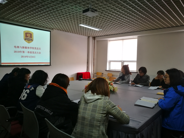 4月9日下午13:00,电视与新媒体学院党总支于F422组织召开2019年第一次教工党员大会。会议由学院党总支书记夏睿主持,教工党支部书记冯娜娜及全体教工党员参会。