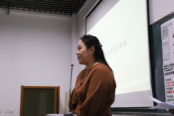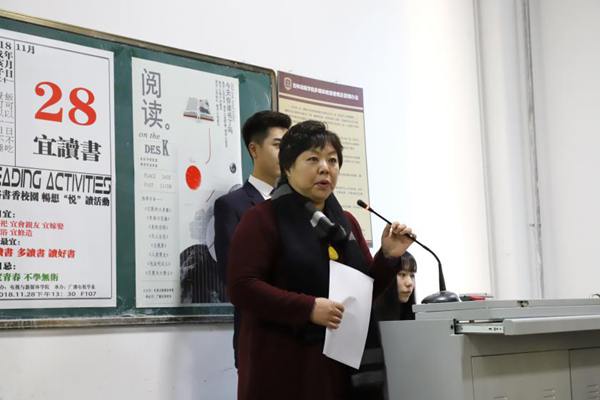 吉林省阅读大使静言老师也用自己的读书故事来激励同学们走进阅读、享受阅读。她在现场故事化的表述深入浅出的引导和激励着在座的每一位同学,呼吁大家开始读书,坚持读书。