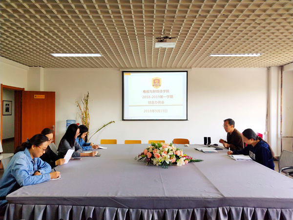 9月19日下午14:00,电视与新媒体学院于F422会议室召开2018-2019学年第一学期第一次综合办公室工作例会。会议由学院常务副院长杨宇飞主持,综合办全体人员参会。
