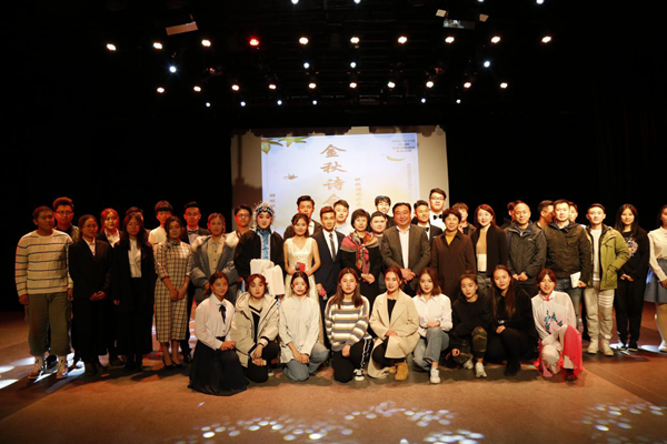 本次金秋诗会由播音与主持艺术专业承办,得到了网络与新媒体、广播电视编导、摄影专业的大力支持,三个专业的同学们通过网络转播、节目策划、影像拍摄等方面对接合作,同时也得到了影视造型等学院学生的大力配合,实现了跨学院跨专业交叉融合,促进了各学科专业的联动与互补。
