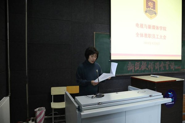 4月3日下午1:30,电视与新媒体学院全体教职工大会暨《新锐教师讲堂》首讲活动在F106举行。学院院长王岩、常务副院长李伟华及全体教职工参加会议。会议由副院长赵凌云主持。