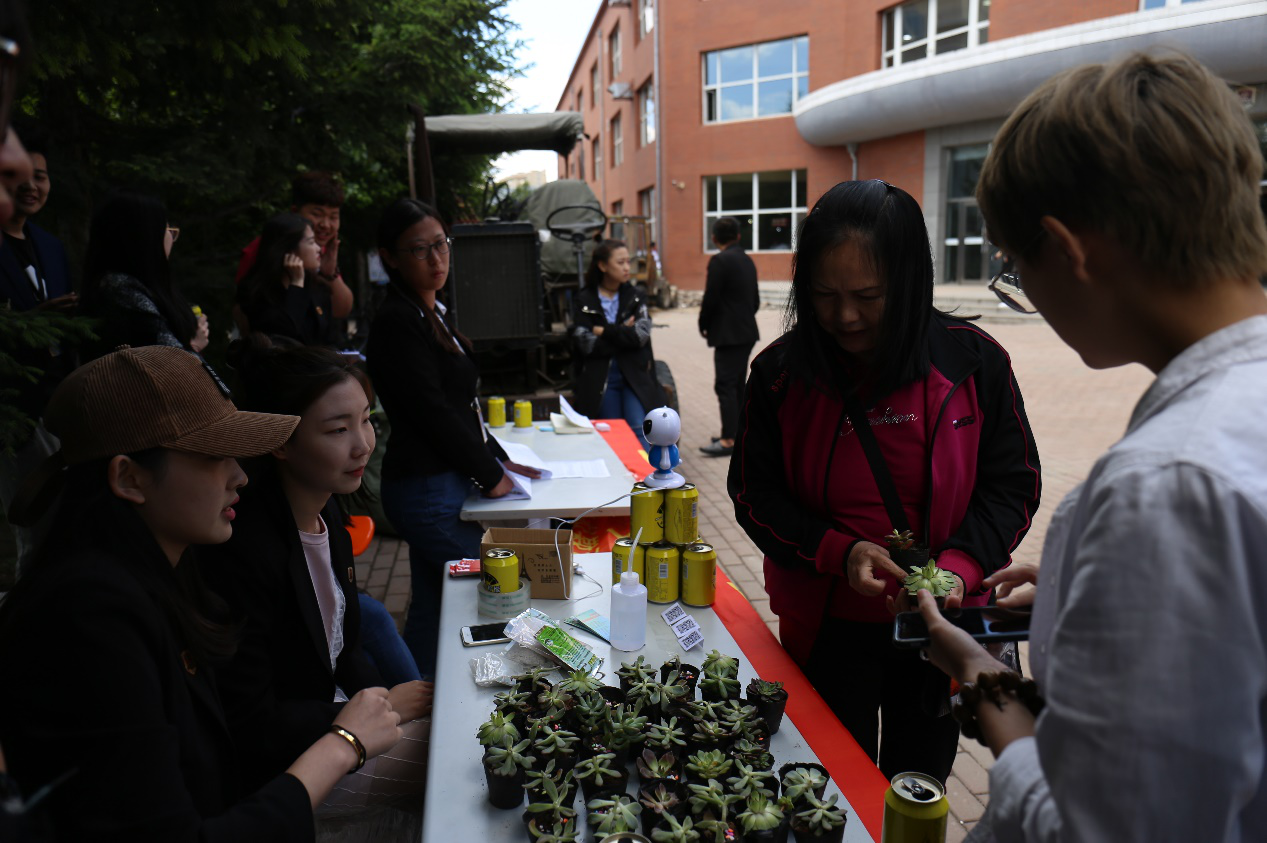 活动现场学生们情绪高涨,人头攒动。活动期间陆续不断的有人拿来空瓶子进行绿植兑换。每个兑换绿植的学子们都会认真的挑选,同时工作人员也会对兑换绿植的同学讲解一些培养多肉绿植方面的知识,从而帮助他们能够更好的培养本次兑换的绿植。工作人员也会让获得绿植的人关注电视与新媒体学院公众平台,希望以后能把培养绿植的过程记录下来,并分享出来。本次活动不仅仅获得了我校学生的大力支持,也有我校老师和学校其他工作人员参与到活动中来。