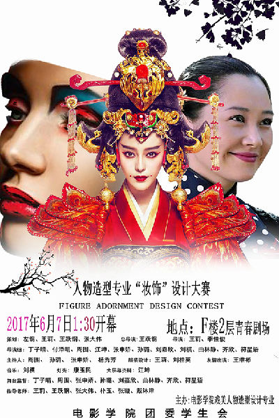 电影学院戏剧影视美术设计系人物造型专业于6月7日在F楼二楼青春剧场举行“妆饰”设计大赛欢迎全校师生前来参观指导。 时 间:6月
