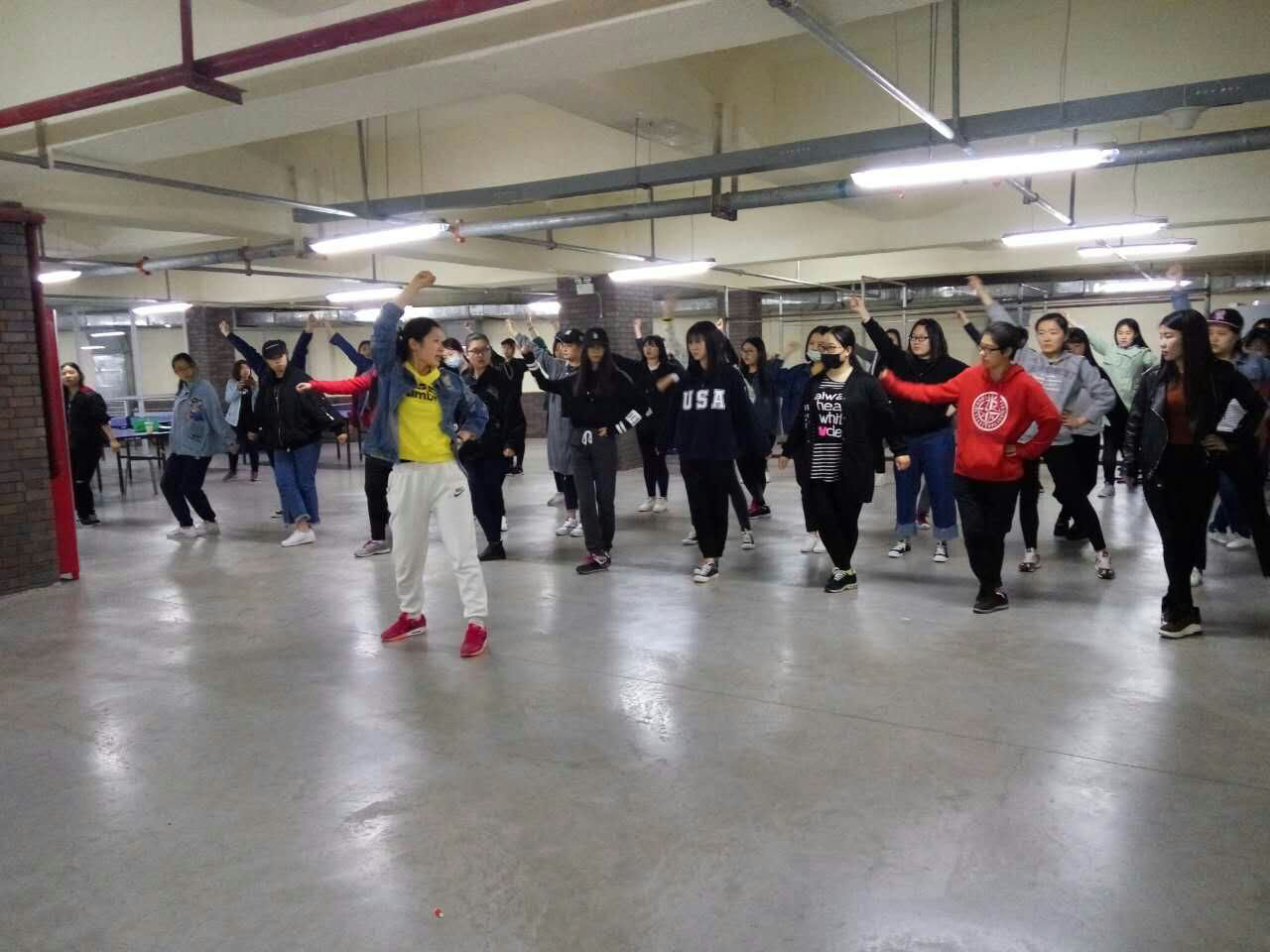 为更好地展现我校学生青春活力与良好的精神面貌,5月14日,电视与新媒体学院以及电影学院学工办全体辅导员与韵律操代表队的200名成员(电视150名、电影学院50名)成员冒雨赶往F楼地下活动室进行排练,雨一阵阵地下着,却丝毫不能动摇师生们的决心和毅力,浇不灭电视与新媒体人的热情。队伍里,大二的学长学姐认真给大一同学们讲解动作、节奏把握等方面的技巧。随着训练的进行,同学们相互磨合,努力将每一个环节做到完美,没有丝毫懈怠,训练的效果也越来越好。虽然韵律操的排练占用了同学们的周末时间,但大家的热情不减,一个个精神抖擞、斗志昂扬。