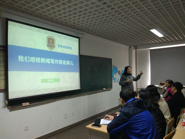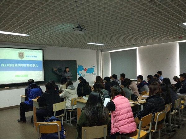 讲座中,刘老师首先就如何区分“文”与“稿”与师生进行互动开场,加深大家对新闻的感性认识,其结合新闻报道的实例与新闻理论实际,从新闻体裁、新闻框架分布、标题写作、新闻稿件中易出现的文法错误、错别字等方面进行逐一讲解。其次,刘寅时教师详细介绍了消息的写作规律、要素以及消息的写作结构,对每一个要素做深入分析及举例。同时,刘老师强调新闻消息写作作为报道最长使用的体裁,在写作中要做到具有“内容真实、事实准确,内容新鲜、具有价值,迅速及时、有时效性,简明扼要、篇幅短小”等特点。刘寅时教师还以自身记者职业生涯中所遇新闻事件为例,提醒大家在新闻消息写作中,要特别注意新闻标题及主体的撰写。此外,她还对照片的格式以及拍摄角度提出了要求。紧接着,为了让同学们有更加深刻和直观的印象,刘老师以实例向同学们展示了新闻稿中同学们常犯的错误以及拍摄照片时常出现的问题,并对此类问题提出了修改意见,希望大家以严谨踏实的态度完成各项工作。