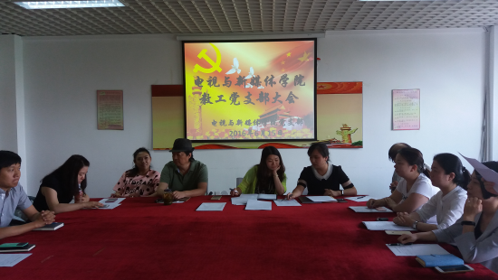 2016年6月15日下午14:00,电视与新媒体学院教工党支部在F422党团活动室召开教工党支部大会。会议由教工党支部书记袁锐主持,学院党总支赵凌云及全体教工党员参会。
