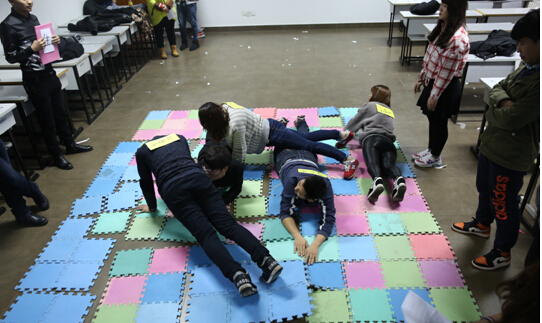 撕名牌前有8个游戏任务,需要每一队一项一项的完成,分别有摆字、吞水传音、踢球、夹杯子和找东西等项目,这些游戏项目最直接的目的还是看队员的团结协作能力。游戏难度是逐层递进环环相扣的,每个人既激动又紧张,在游戏中都努力在为各自的队伍献计献策,奉献自己的一份力量,努力争取每一分钟。