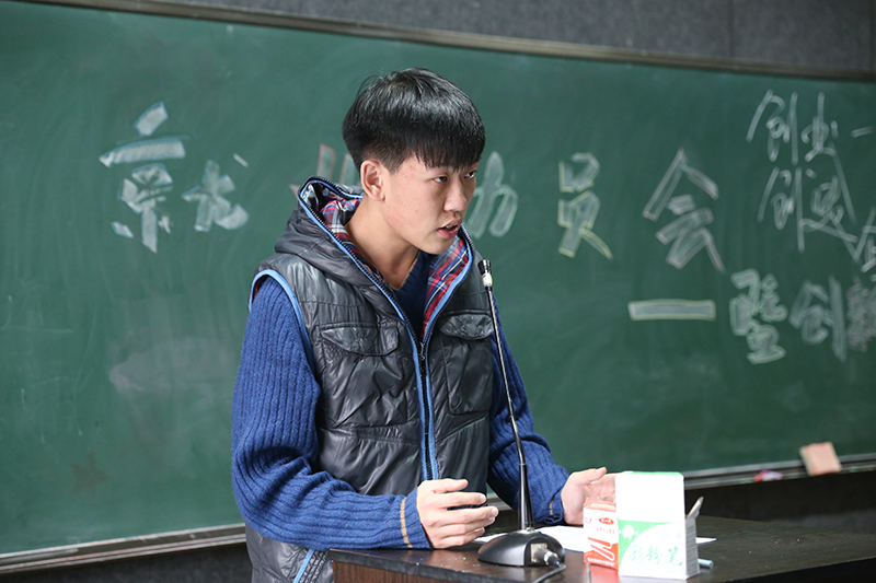 2014级播音与主持艺术专业《橙视创意传媒工作》负责人周嘉鹏、2013级《私人定制主题UI设计》项目组成员白易简,以及2012级播音与主持艺术专业学生刘震,分别结合自己“大学生创新创业训练计划项目”申报和实践,参加创新创业大赛的经验和体会,以及如何面对困难,解决问题,与大家进行了广泛交流。