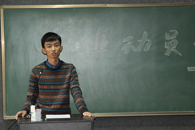 (2014级播音与主持艺术专业《橙视创意传媒工作》负责人周嘉鹏发言)
