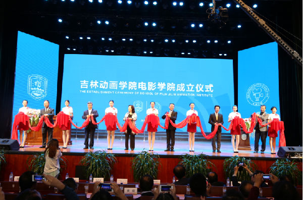 金秋九月,丹桂飘香。在这个收获的季节,吉林动画学院迎来了建校15周年华诞。9月15日下午,吉林动画学院电影学院成立仪式在文化艺术中心顺利举行。来自国内外专家、学者前来参加此次剪彩仪式,他们是:中国电影股份有限公司总经理江平,国家新闻出版广电总局中国电视节委员会副主任兼秘书长王丹彦,韩国电影振兴委员会委员长金世勋,中国传媒大学副校长廖祥忠,北京电影学院副校长、中国动画学会常务理事孙立军,韩国文化产业振兴院院长洪相杓,韩国釜山国际影视节目展组委会执行委员长具宗祥,汉阳大学电影学院名誉教授郑用琢,韩国编剧家协会原会长、顾问池相学,韩国国立艺术综合大学映像院电影学院教授片章完,香港浸会大学协理副校长、传理学院院长黄煜,奥斯卡最佳特效影片《盗梦空间》、《雨果》特效总监MiodragColomb,吉林动画学院董事长、校长郑立国以及各级领导和媒体代表、电影学院全体师生参加了本次成立仪式。成立仪式由我校播音系教师,吉林和长春电视台主持人刘洋和段旭如主持。