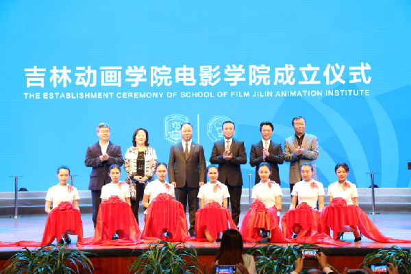 气势恢宏的电影学院宣传片拉开了仪式的序幕,片中充分展现了电影学院的办学理念以及办学特色和教学水平。影视明星黄奕、范逸臣、尹子维、侯天来、石兆琪等也纷纷通过视频表达对电影学院成立的祝贺。著名导演、吉林省电视家协会副主席、电影学院院长宋江波先生在贵州拍摄电影,为此特通过VCR致辞,他首先祝贺吉林动画学院电影学院的成立,并强调电影学院应当把培养学生与创作相结合,为电影教育事业贡献一份力量。随后韩国电影振兴委员会委员长金世勋发表讲话,他讲到本次活动使其深深感受到了吉林动画学院电影学院的学生对电影的热爱,同时他希望中韩两国在文化产业方面的合作交流更加密切。特邀嘉宾中国电影股份有限公司总经理江平在致辞中指出电影学院应当坚定信念,脚踏实地,鼓励学生创作出更多更优秀的作品。