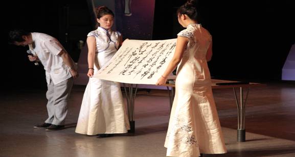 整场晚会还伴随着充满律动感的爵士舞;十佳歌手的倾情献唱;崔国清院长现场挥毫泼墨与温婉大气的古筝音乐相融,古色古香;两位同学的甜美舒心的对唱,还有最后飘逸柔美的惊鸿舞为晚会的结束留下惊艳的一笔。