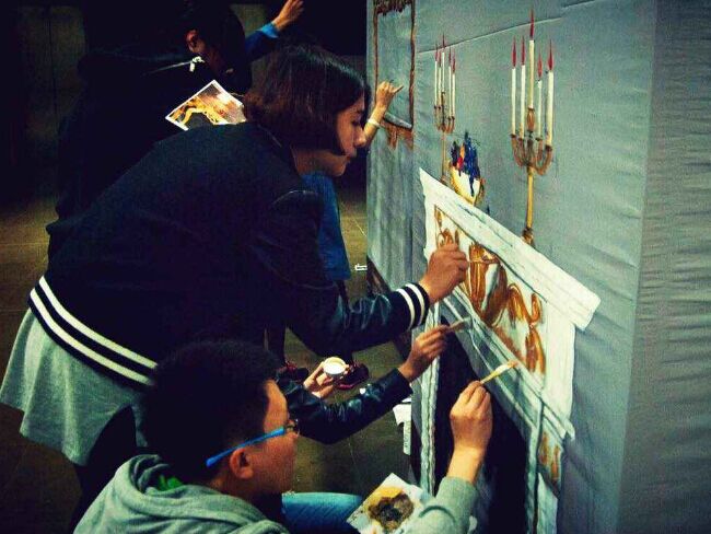 通过此次绘景,不仅锻炼了学生的专业实践能力,同时也加深了各专业间的沟通与互助,12级表演班和13级舞台美术班的同学们跨专业通力合作,尽心尽力,为话剧的演出奠定了基础。