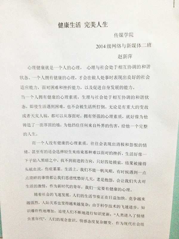 传媒学院5.25心理健康月系列活动(三)“我爱我--健康生活,快乐成长”作品展
