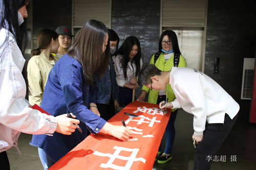 现场由学生书记程荟羽组织大家深入了解母亲节签名活动的重要性以及此次活动的意义,同学们也拉起横幅向来往同学进行宣传母亲节,同学聚集数量也越来越多,签字活动正式开始。