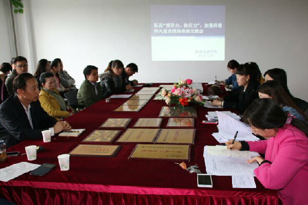 为了更好地贯彻学校关于开展“提高领导力、执行力”主题教育、切实加强师德建设活动方案,落实好方案中的阶段性主题活动任务,影视戏剧学院领导高度重视,紧密结合学院实际,制定活动实施计划,按部就班开展好各项工作。此次大讨论阶段,共分为两个环节,一是召开交流座谈会,统一活动思想,分享教学与行政管理工作经验;二是以学生班级、各系室和办公室为单位,通过座谈会、研讨会以及网上交流等方式开展扩大范围的问题分析及讨论。