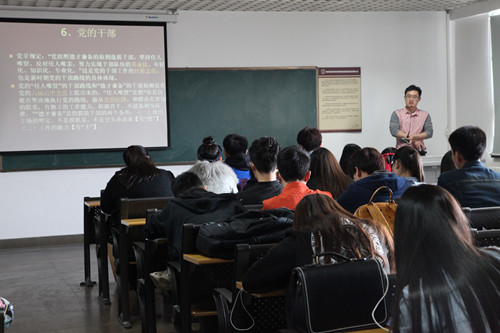 为了增强预备党员、入党积极分子的先进性,促进对中国共产党更深入的了解。影视戏剧学院于4月21日12点30分在F楼511进行《党章是党的宪法》的学习,此次讲座受到影视戏剧学院的高度重视,由学生党支部书记侯德军老师亲自讲解,学院全体预备党员、入党积极分子参加此次学习。