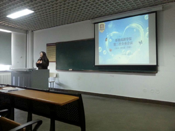 2015年3月25日,影视戏剧学院召开了学期第二次全体教职工会议。会议由学院院长助理盛伟男主持,会议有三个主题:一是介绍竞聘后新到学院的有关人员;二是对日常行政管理、教学运行等工作进行了详细部署;三是围绕学院近几年发展中存在问题和未来的发展定位统一了思想。