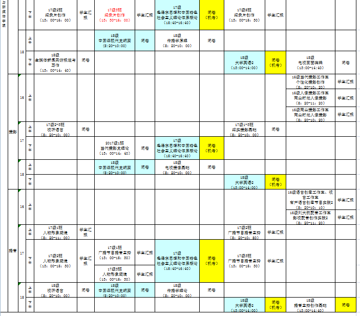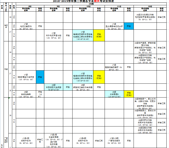 电视与新媒体学院 2018-2019学年第二学期各专业期末考试安排表