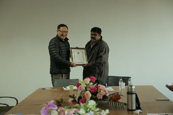 在维诺德·兰加纳特编剧来校交流的时光里,与电影学院各系教师开展了多次学术交流会。交流会上,老师们从各个专业的特性出发,就中印两国在电影制作、教学等方面的异同进行了深度交流和学习。同时,电影学院副院长周炜为维诺德·兰加纳特编剧颁发了《吉林动画学院特邀客座教授》的聘书,希望借此能够促进电影学院与印度电影市场的深入合作与交流。