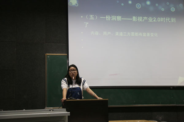 交流会第二阶段由网络与新媒体系副主任温丽君和广播电视编导系主任助理侯琳主讲。温丽君对2016中国影视艺术创新峰会进行总结,通过“主题、五大亮点、内容为主、原创及大IP”几大方面进行总结,讲述了未来电视、网络媒体方面的发展前景,讲述了“用户细分与粉丝经济”“渠道多元化”等当下前沿知识。教师侯琳通过“内容、用户、渠道、技术”等方面对影视产业2.0时代的到来做了仔细讲解,结合实例对影视产业1.0和影视产业2.0时代进行了对比分析。