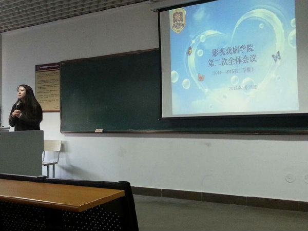 ‍2015年3月25日,影视戏剧学院召开了学期第二次全体教职工会议。会议由学院院长助理盛伟男主持,会议有三个主题:一是介绍竞聘后新到学院的有关人员;二是对日常行政管理、教学运行等工作进行了详细部署;三是围绕学院近几年发展中存在问题和未来的发展定位统一了思想。