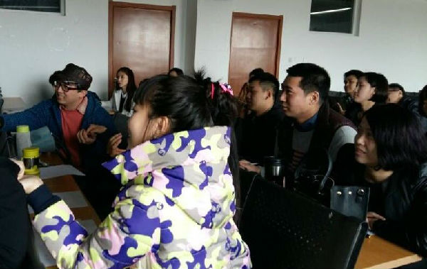 开场游戏过后,张帅老师开始了“综艺节目主持”的课程讲授,通过近期热播的“我是歌手”孙楠退赛事件引入主题,突出主持人的重要性和特殊性。期间,贯穿了大家耳熟能详的综艺节目,让大家了解综艺节目和综艺晚会的区别,以及综艺节目的发展简史。最后通过主持人临时救场的案例分析,演绎了综艺节目主持所必备的素质:即兴发挥和应变能力。整场观摩课融入了很多时下热播的节目以及娱乐话题,使大家能积极参与探讨和互动,也使得我们对全媒体时代有了新的认知。
