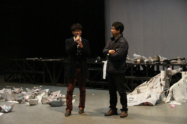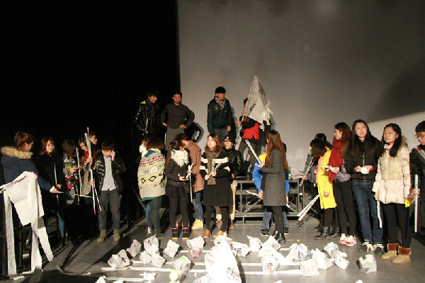 讲座开始,林建洙教授以‘用文字的种子创作剧场的森林’为切入点展开自身对于舞台美术的理解。他特别强调了文字的重要性——文字是组成创作的基础。接下来,层层剖析由点到线,由线到面。讲述了舞台剧本环环紧扣的创作过程。讲座期间,组织学生玩起了比划猜词游戏,目的是请学生们明白传播的重要性。最后通过让学生亲手创作‘三国志’画面,简单明了的让学生了解到剧场空间表现技法。整场讲座的热烈气氛让同学们兴奋异常,大家了解到一个好的舞台美术不仅仅局限于剧本,演员,观众,舞台艺术也是不可或缺的一部分,让同学们更加了解和热爱自己的专业。